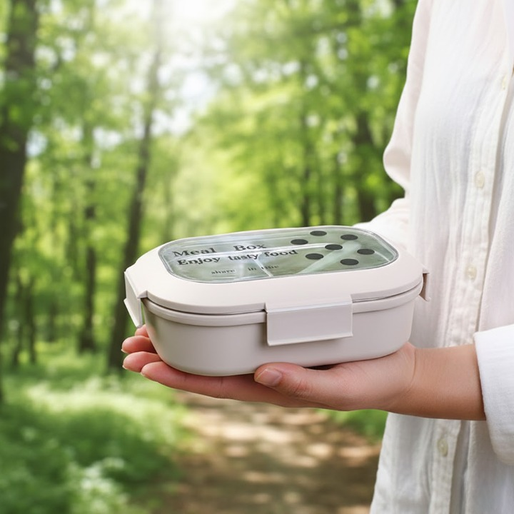Un vantaggio fondamentale è l'inclusione di un pratico cucchiaio, che può essere riposto facilmente. Il design compatto e le chiusure a clip affidabili rendono il contenitore facile da trasportare in qualsiasi borsa. Un "Meal Box" essenziale per godere di cibo gustoso ("Enjoy tasty food") ovunque ti trovi!